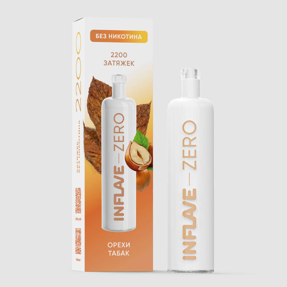Электронная сигарета Inflave Zero 2200 затяжек Орехи Табак со вкусом натурального табачного аромата, дополненного утонченными ореховыми нотами.